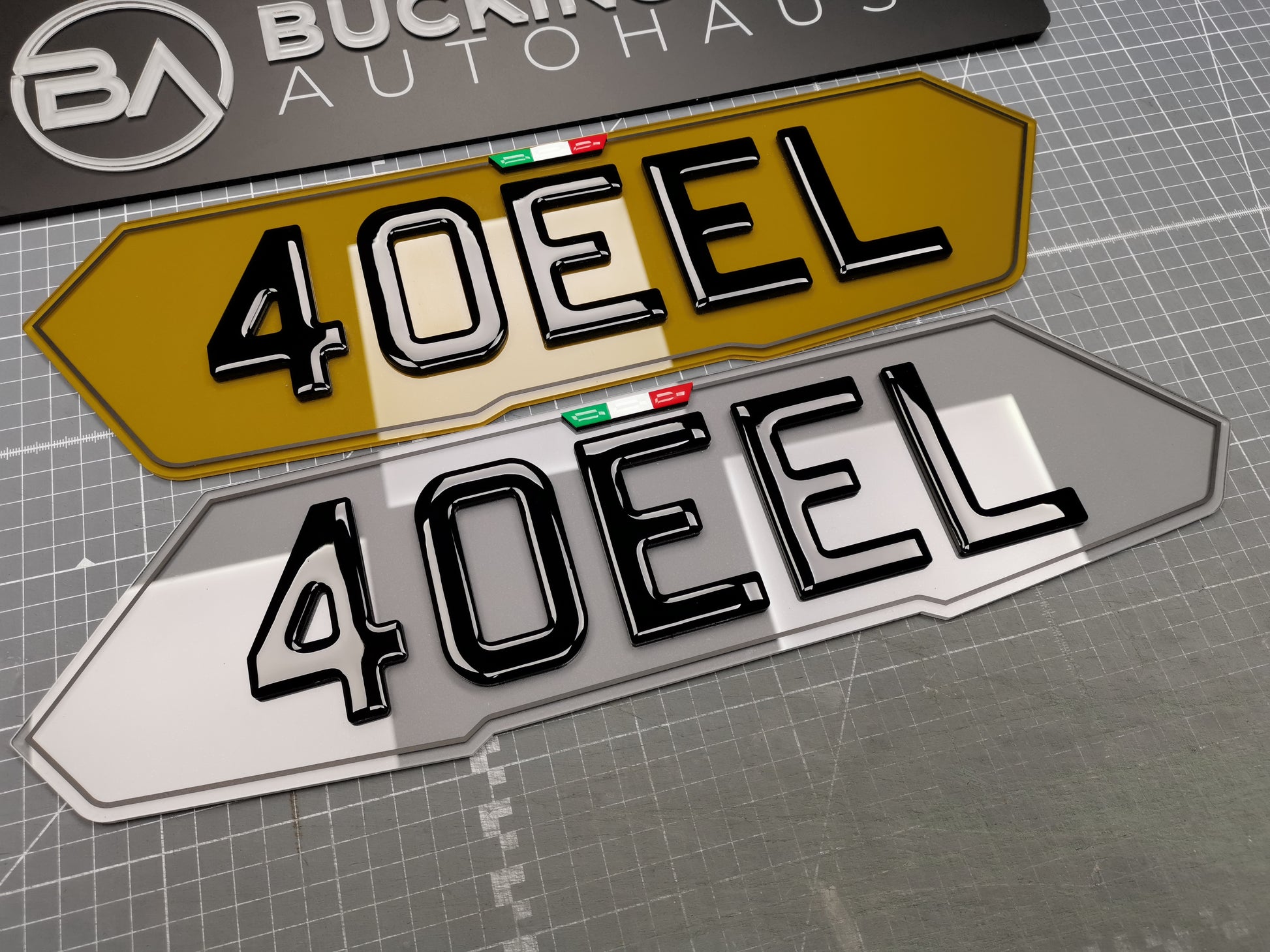 An acrylic number plate laser cut to absolutely any shape (maximum size 600x200mm), a very popular shape is the lamborghini hex shape, but we are able to replicate or custom create a shape to suit your vehicle, the plate is then backed with a high definition 3M number plate reflective. Please specify shape in the 'order special instructions' at the checkout.